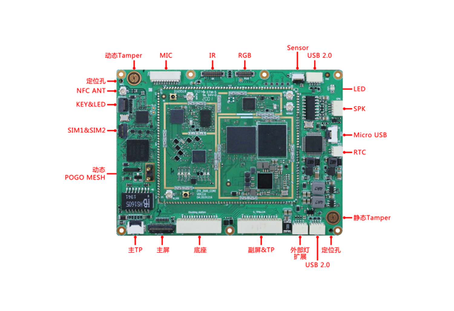 S225刷臉支付終端主板_人臉識別主板(RK3288) 人臉識別主板采用了瑞芯微RK3288四核處理器,其CPU采用Cortex-A17構架設計,頻率高達1.8GHz,GPU集成ARM的Mali-T764。 more >
