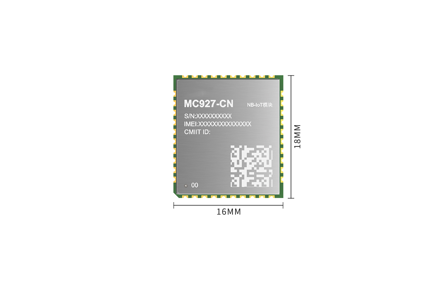 NB-IOT模組:MC927-CN(Cat NB2:B3/5/8) NB-IoT模組MC927-CN是針對中國推出的低功耗、純數傳以及高性價比的 LTE Cat NB2 無線通信模組,支持B3/5/8頻段,采用LCC封裝,尺寸為18.0mm*16.0mm*2.2mm。 more >